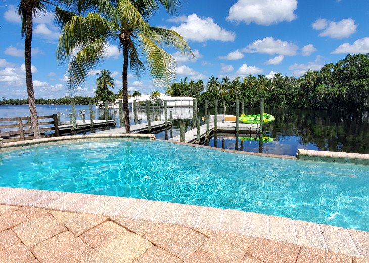 Bay of Grace is a totally remodeled high-end 3BR 2BA home (Sleeps 8) directly on the river with a pool, wading pool, and hot tub...all with spectacular views of the river and sunsets. There is an extensive dock system for your large or small boats or if you rent one there is plenty of space to dock it in the calm and tranquil bay and a public boat ramp nearby. Come enjoy a family vacation or relaxing weekend getaway on the river.