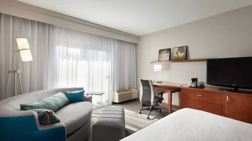 Our newly renovated Courtyard by Marriott Fort Myers Cape Coral boasts newly renovated guest rooms and public spaces ideally situated near pristine Gulf Coast beaches and downtown Fort Myers. Convenient for travelers, our hotel is near the Fort Myers airport, Southwest Florida International (RSW). Explore popular destinations like CenturyLink Sports Complex, Harborside Event Center and Edison Ford Winter Estates. Stay in our Fort Myers hotel near JetBlue Park, home of Boston Red Sox spring training. Start your day satisfied with a tasty breakfast sandwich & specialty Starbucks® beverage at The Bistro, then return for an evening meal paired with bar service. Following an action-packed day, retreat to relaxation in our brand new guest rooms & suites with free high-speed Wi-Fi, modern TVs and signature Marriott bedding. Work up a sweat with a brisk workout in our 24-hour fitness center, then cool down while making a splash in our outdoor pool. Enjoy all the Courtyard Fort Myers Cape Coral hotel has to offer.