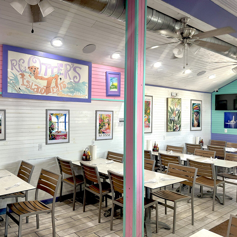 While you're here, choose from nearly 100 menu items including fresh seafood, pasta, burgers, salads, soups, and a kid's menu. Enjoy live music every day with seating available indoors and outdoors. We are also pet friendly (as long as your furry friends behave). Come to the heart of Old Captiva Village and experience award-winning dining for the whole family at RC Otter's Island Eats!